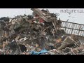 footage of chernobyl Machinery working on a landfill site with mixed flock of gulls flying overhead, Pitsea, Essex, Engla | |